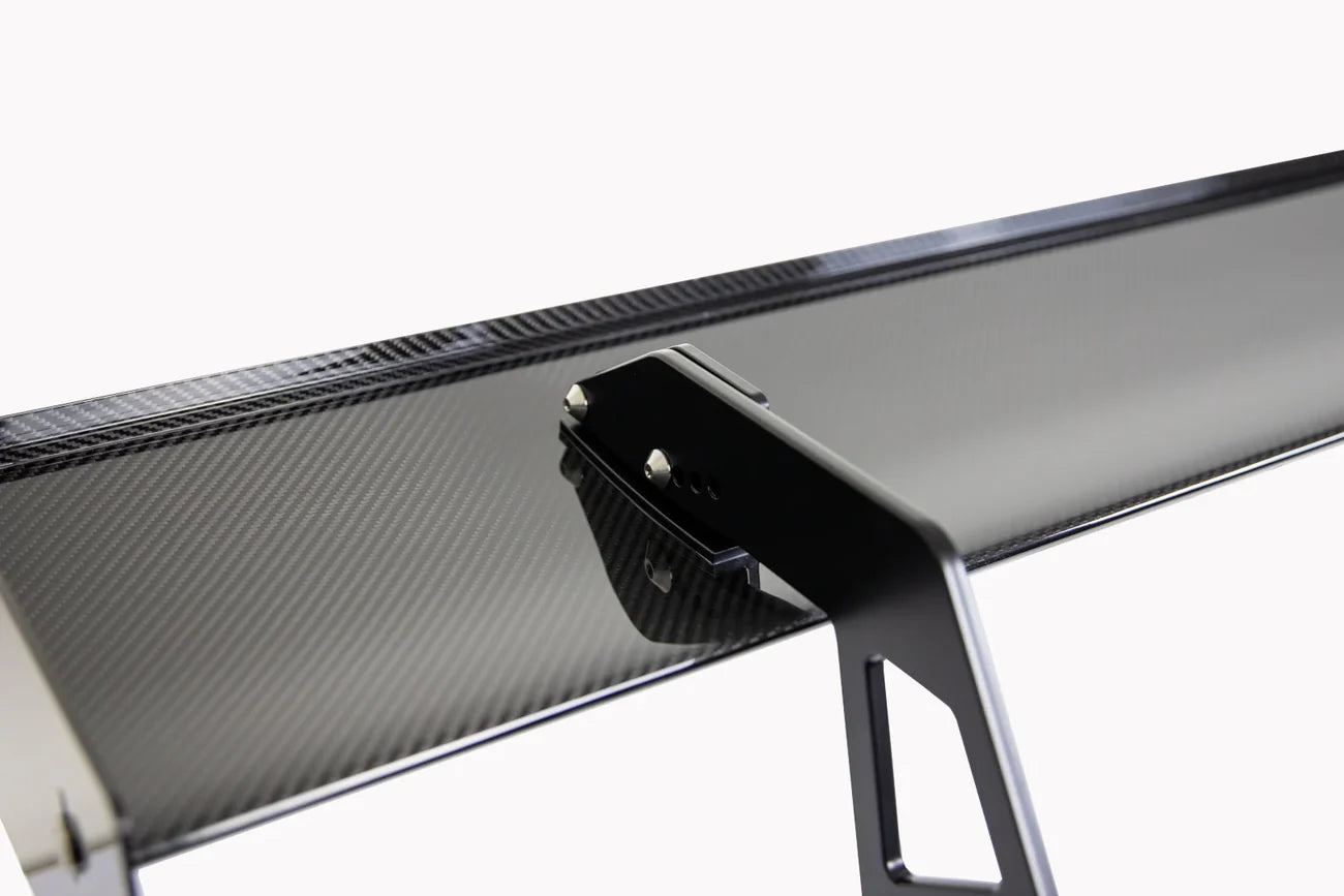Constructed from pre-preg carbon fibre and formed in billet aluminium molds, the GT-250 Swan Neck Wing is CFD-tested for consistent aerodynamic performance. Pre-installed carbon gurney flaps enhance downforce, and each wing is made to order with a typical 2–3 week lead time.