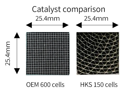 The stock ceramic-core cat limits exhaust flow, holding back your engine’s performance. The HKS Metal Catalyzer features:
