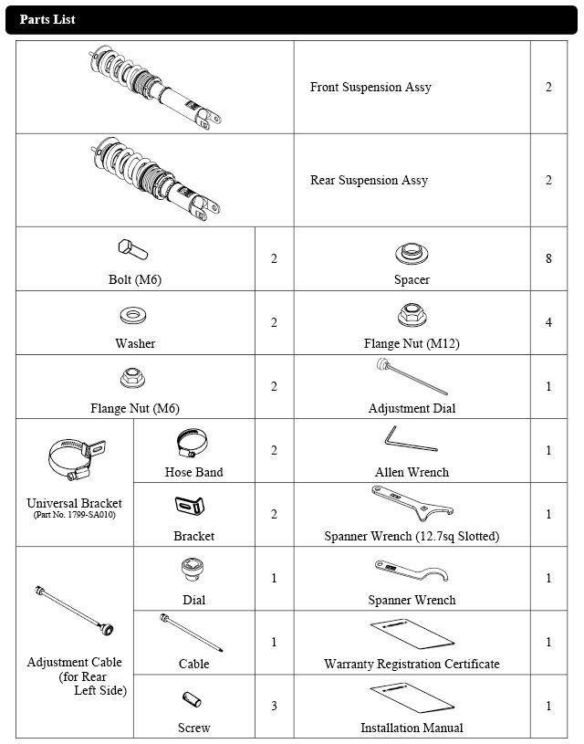 - Features LVS high-strength springs designed for sports driving, delivering both response and ride quality