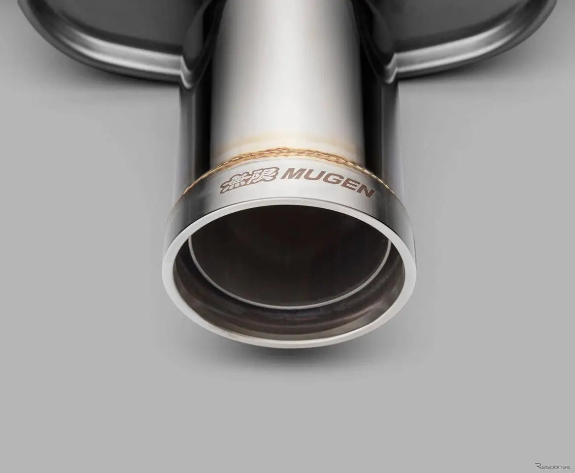 Developed under the concept of improving exhaust efficiency while reducing weight, the Mugen Sports Exhaust adopts a single center layout with a bold 94mm diameter finisher. Though simple in form, the finisher carries a laser-engraved MUGEN logo, embodying “functional beauty” with a purposeful, sporty aesthetic.