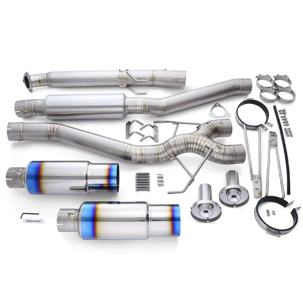 We wanted to make an exhaust system that will allow you enjoy your car more from the sound of the engine. Increased performance gains with the best power and response was the main target points. Through the use of minimal bends and the optimum pipe size we were able to achieve this goal. To improve the performance of the engine with just the muffler system alone isn't easy. So with the use of our Titanium material we were able to further reduce unwanted weight without compromise to the products overall strength. So with the strong commitment to our values and targets we were able to make a great product for all to enjoy.